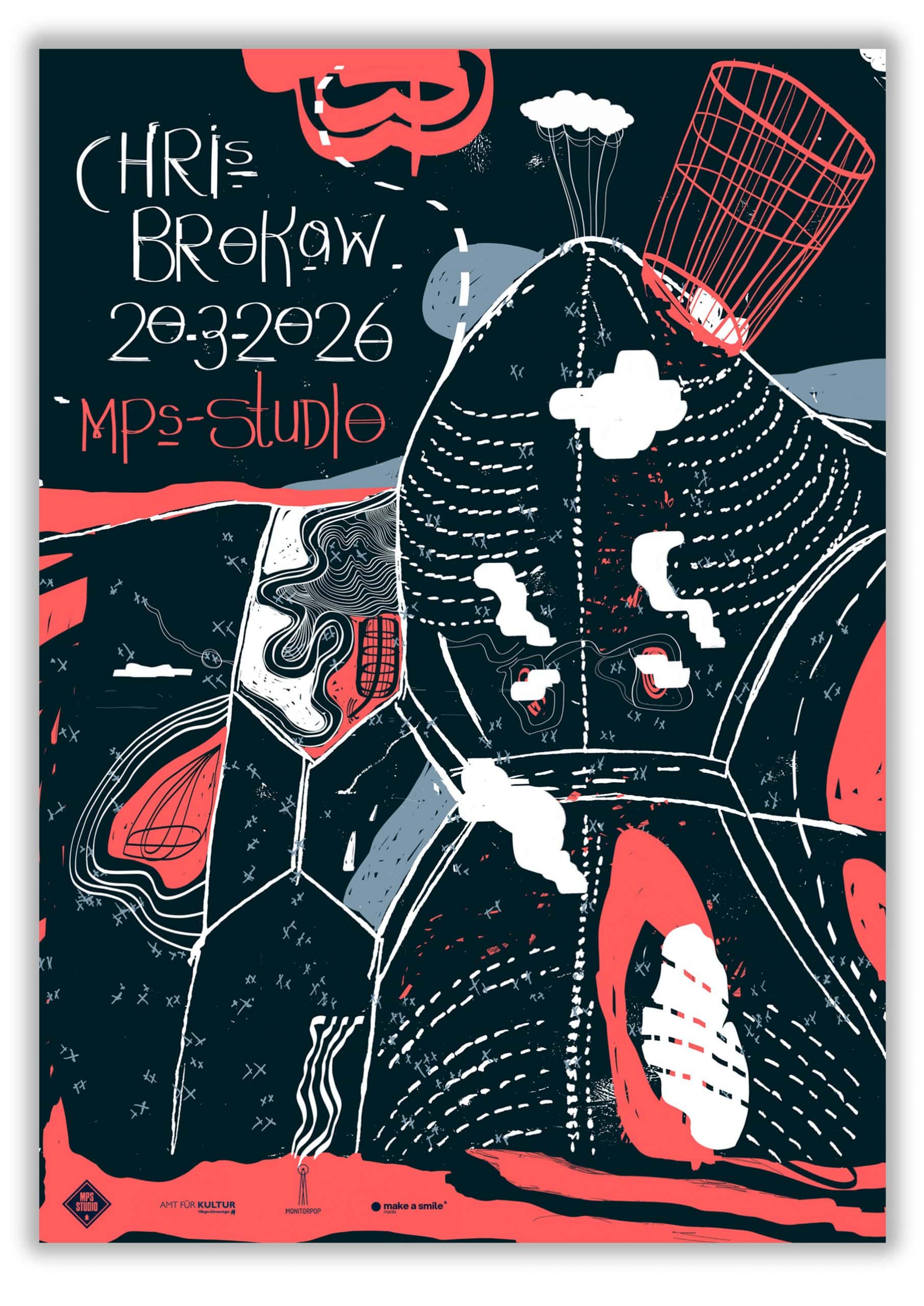 Für eine Veranstaltung mit Chris Brokaw, Mitglied der US-Band Codeine im MPS-Studio, habe ich ein Plakat entworfen. Inspiriert von der wunderbaren Vulkanlandschaft im Hegau! Fährt man vom Bodensee nach Villingen, durchquert man diesen schönen Landstrich. Wer lange sucht entdeckt evtl. auch das Gesicht von Winfried Kretschmann (ohne Garantie).